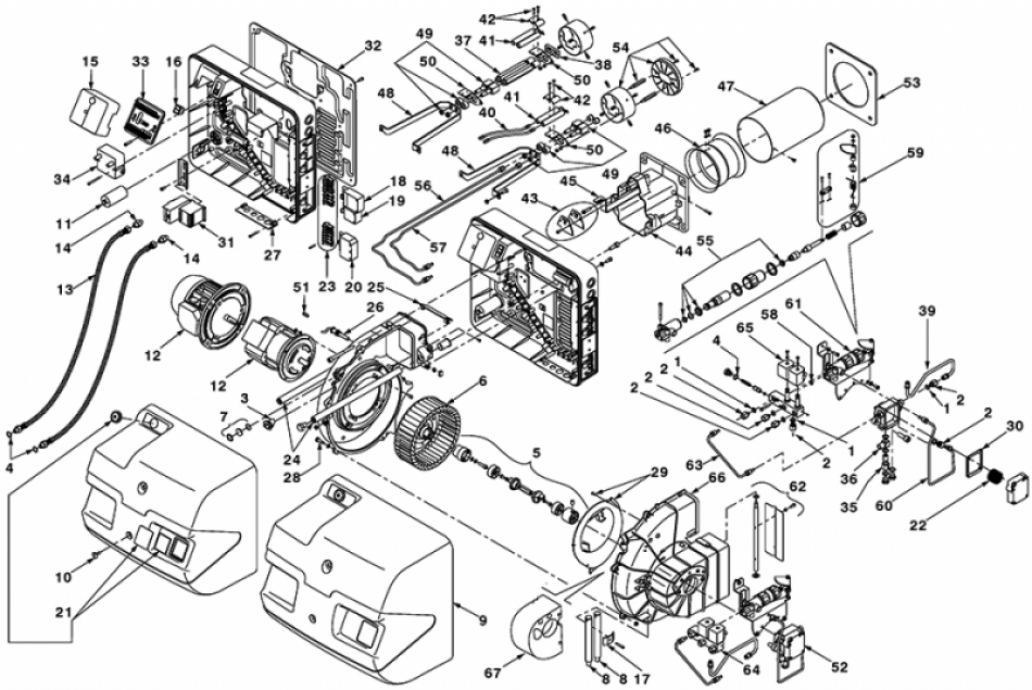 Спецификация запчастей для горелки RL 44 MZ (973 T)